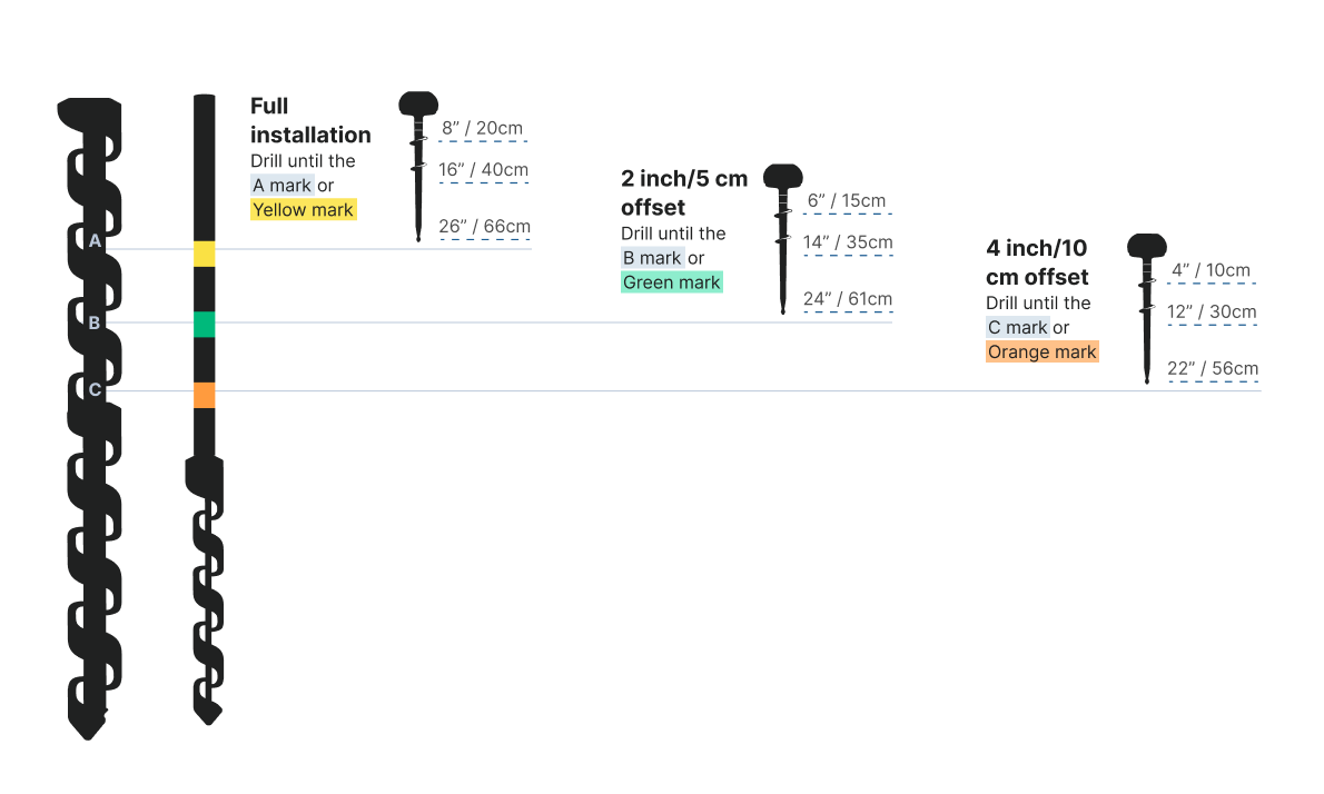 Choose the offset you want and accordingly - know how deep you should drill in the ground.