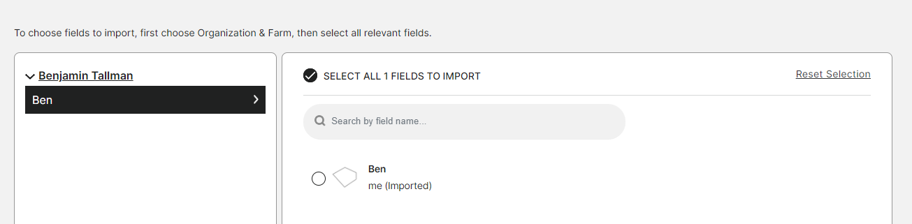 7. Clicking the option to import fields will take you to a page where it will show you the available fields