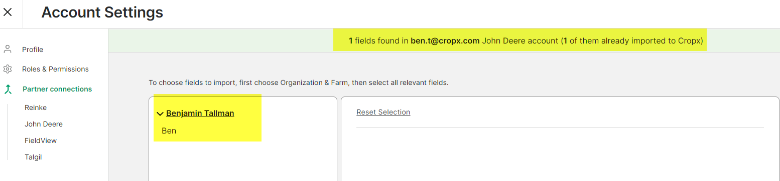 6. After clicking OK, you are taken back to the CropX page where you now see the connection