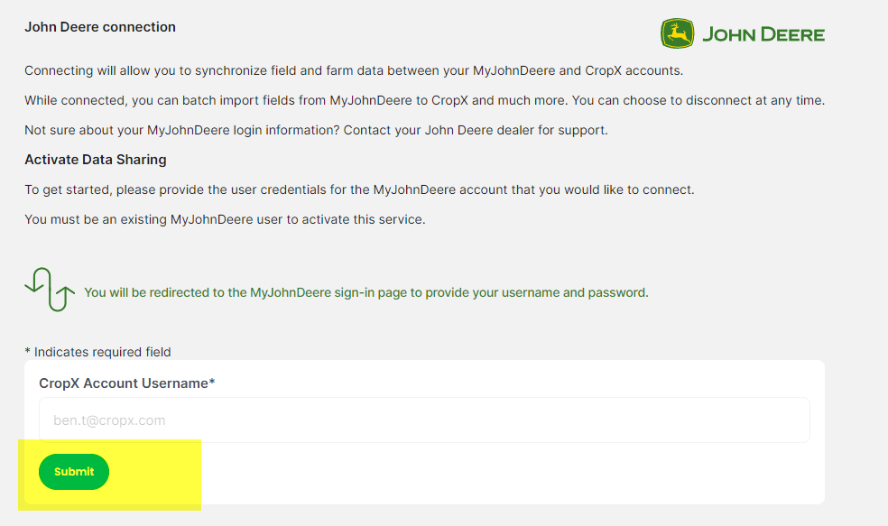 4. You will automatically be taken to the John Deere sign-in page. Simply log in to your John Deere account.