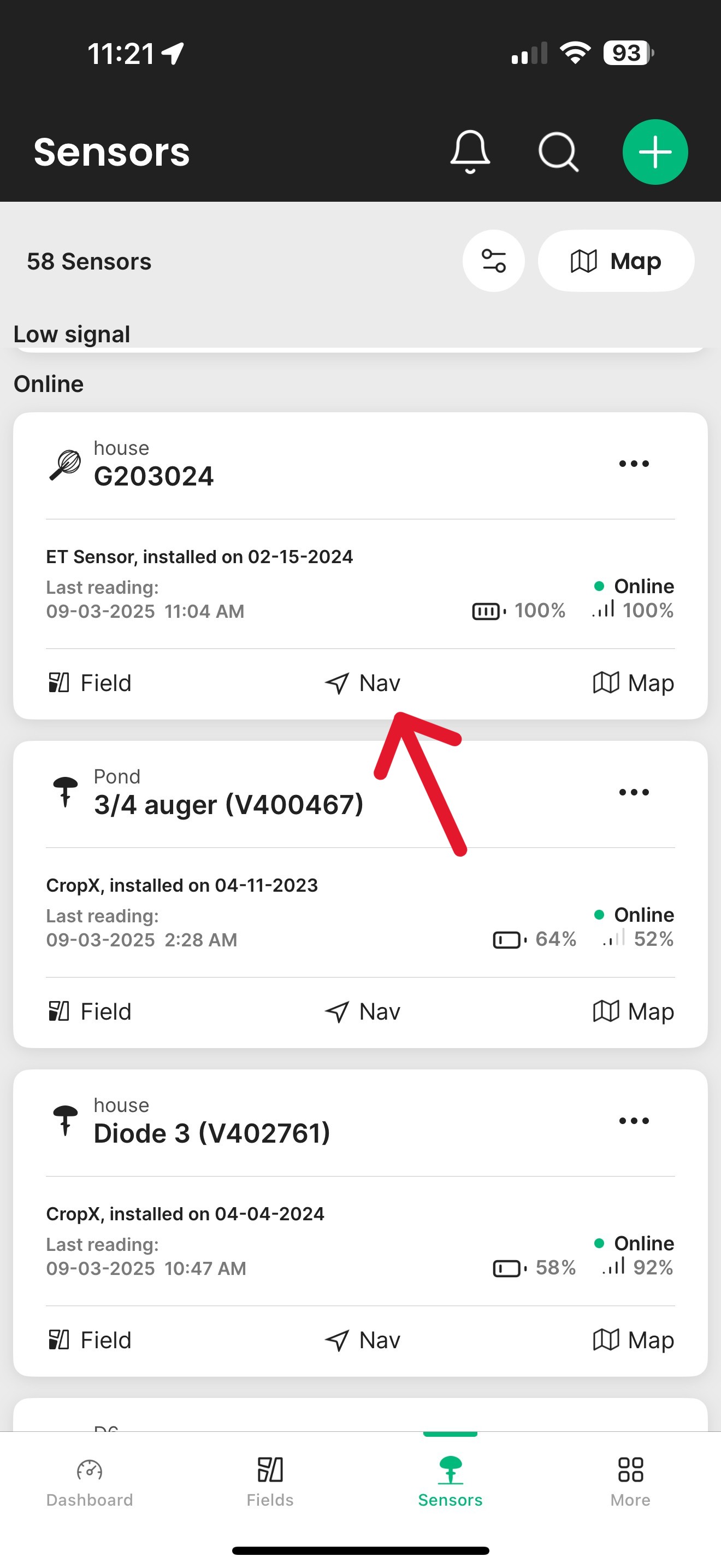 Choose the sensor you want to find and tap Navigate to Sensor.